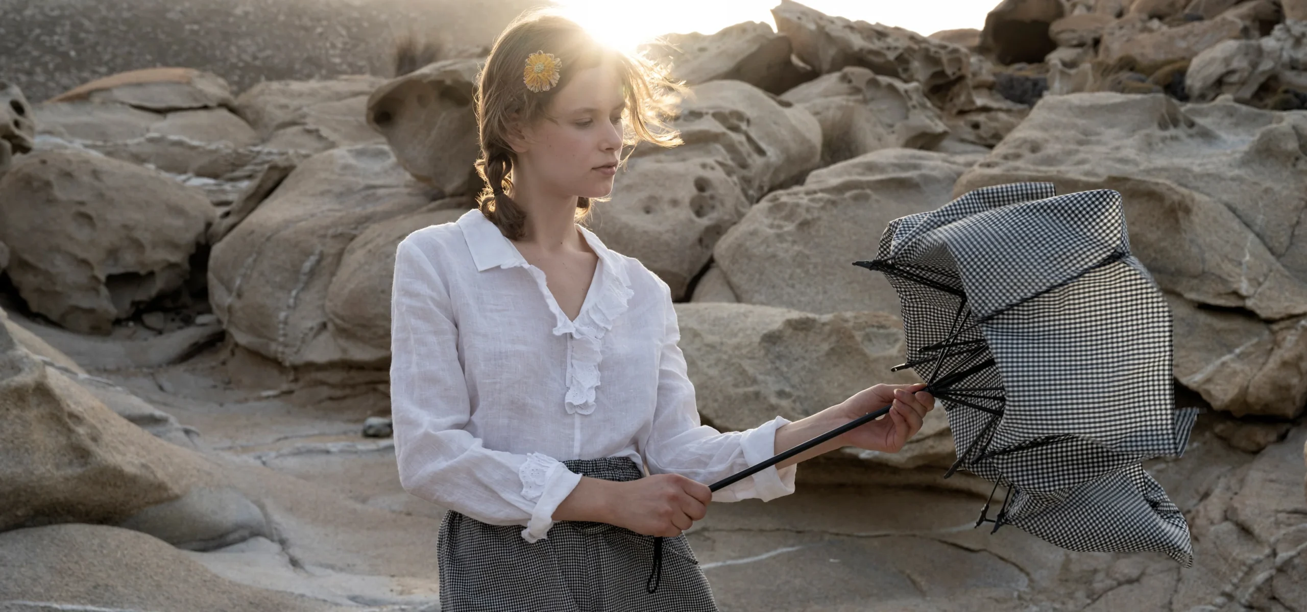 Ayla is a relaxed blouse that deserves a spot in every wardrobe. Made in garment-dyed crepe de chine in ivory, it features beautiful covered buttons and a soft collar with a deep V opening. The sleeves are three-quarter length with cuffs and covered button detailing.