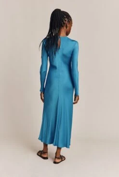 We love this simply yet stunning style crafted from our sustainable Eco Vero Satin in blue. With long straight sleeves, Freya is a classically elegant midi dress with gorgeous cut-out detail just below the neckline. Wear yours with your favourite heels and a signature clutch bag.