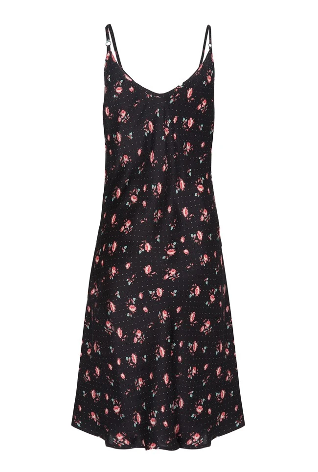Feel extra fabulous when it comes to bedtime with our Iris slip. Short in length and made from lightweight satin, this scattered rose floral nightgown features delicate straps for a look that’s comfy and flirty at the same time. Perfect for those who prefer a looser fit, this slip will provide freedom of movement. Wear with a pair of fluffy slippers and our Alexa Robe and you have the perfect nightwear combo.
