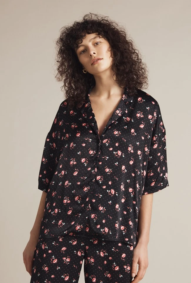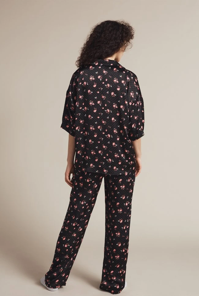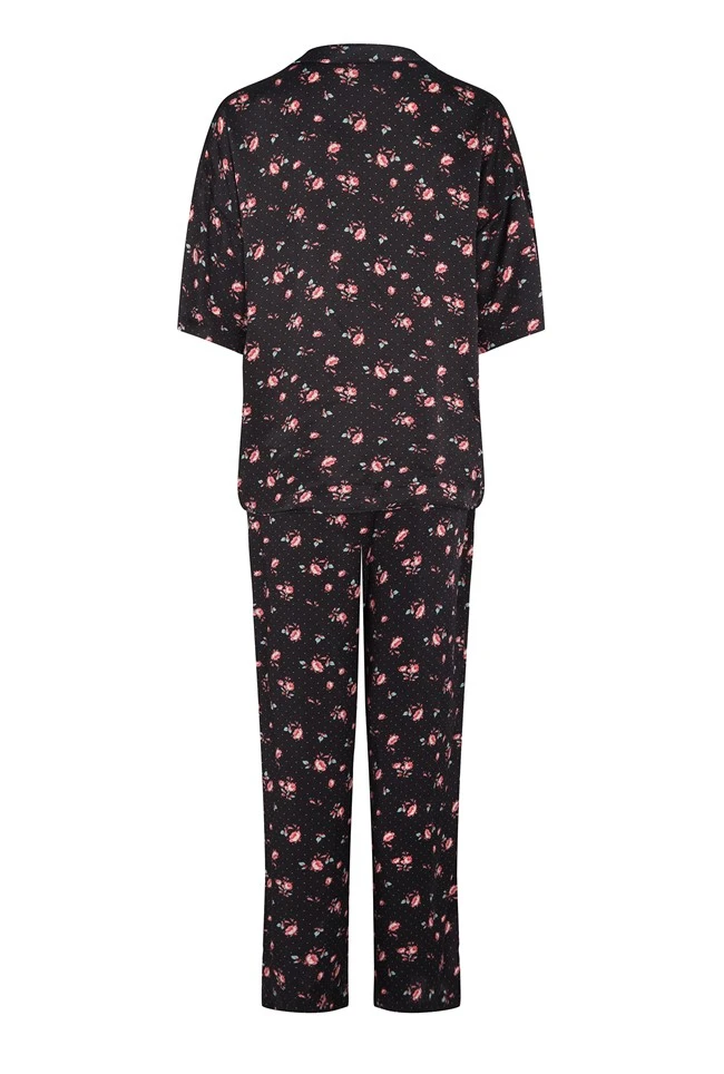 Make your bedtime routine feel a little more luxurious and slip into our floral Penny pyjamas crafted from smooth satin. Featuring a striking floral print throughout, this set provides an elegant fitting, short-sleeved shirt and matching straight cut trousers with an elasticated waist. Pair with your favourite slippers and your night-time look is complete.