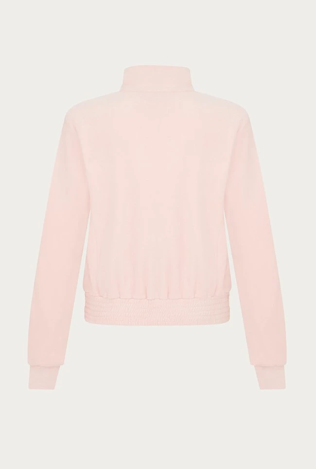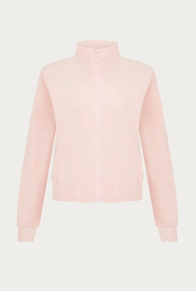 Our pink velour zip-up track top is designed with comfort and style in mind. Gently fitted with a high-neck collar, ribbed cuffs and an elasticated waistband, it takes inspiration from the ‘90s. Layer over a plain tee and pair with our matching trousers for the ultimate downtime look. Loungewear has never looked so good.