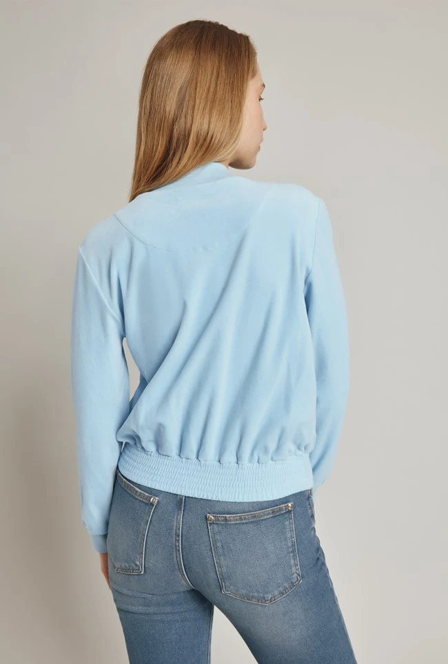 Our blue velour zip-up track top is designed with comfort and style in mind. Gently fitted with ribbed cuffs and an elasticated waistband, it takes inspiration from the ‘90s. Layer over a plain tee and pair with our matching trousers for the ultimate downtime look. Loungewear has never looked so good.
